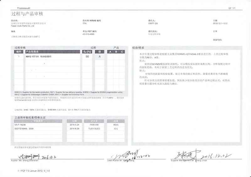 A级供应商审核报告 一汽大众平台